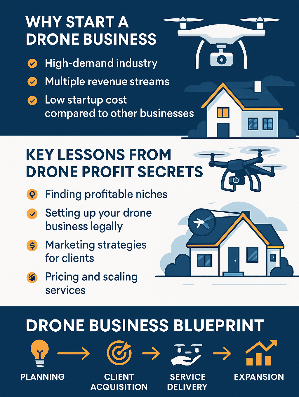 A long-term drone business doesn’t just happen—it’s designed. The drone business blueprint section of the book helps entrepreneurs build a realistic business plan that’s actually profitable.