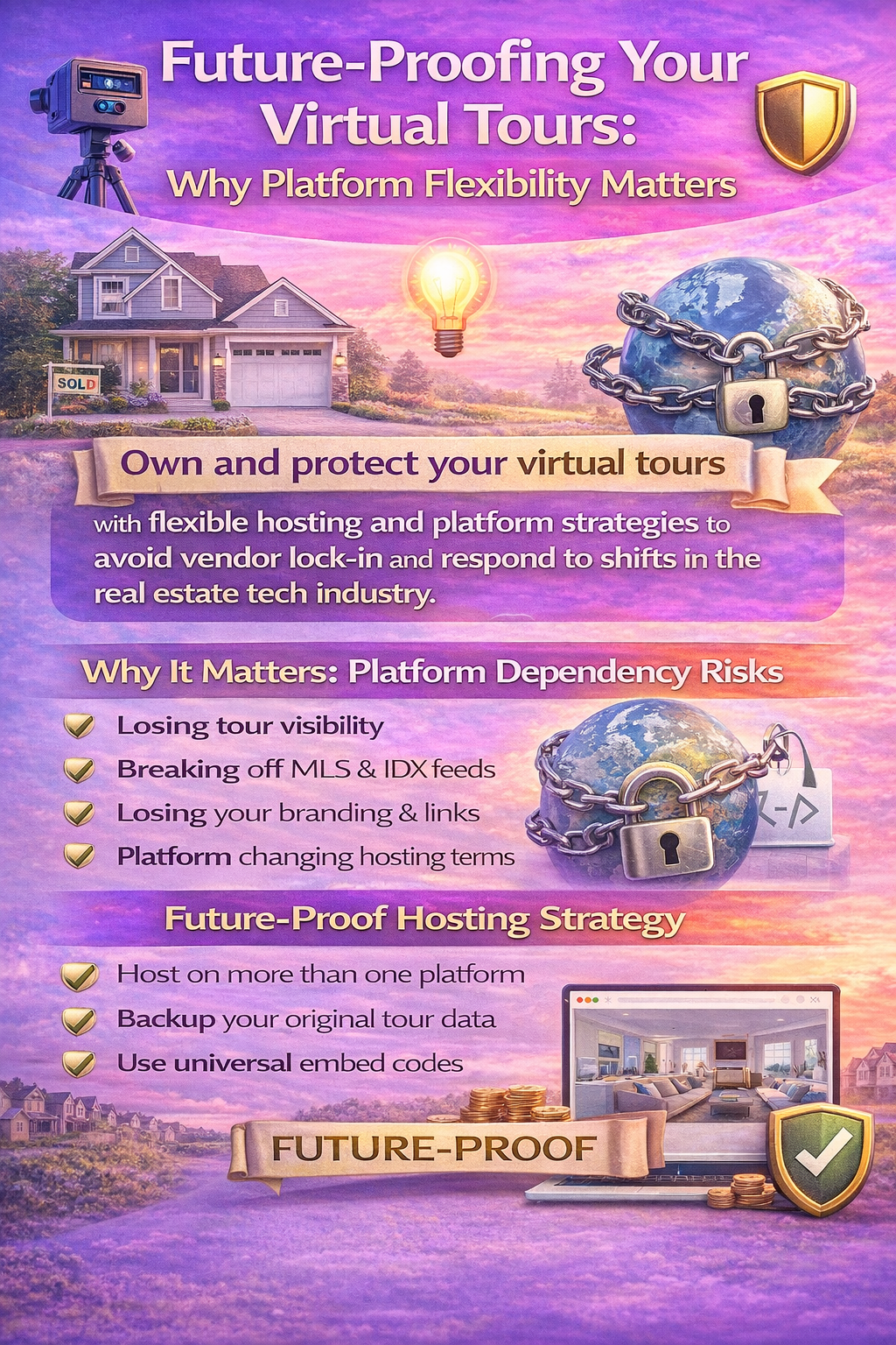 Virtual tours are now core components of real estate marketing — from agent websites to MLS and IDX displays. But if your tours are tied too tightly to one platform’s rules, you could suddenly lose visibility or control. That’s why future proof virtual tours and a smart virtual tour hosting strategy are essential.