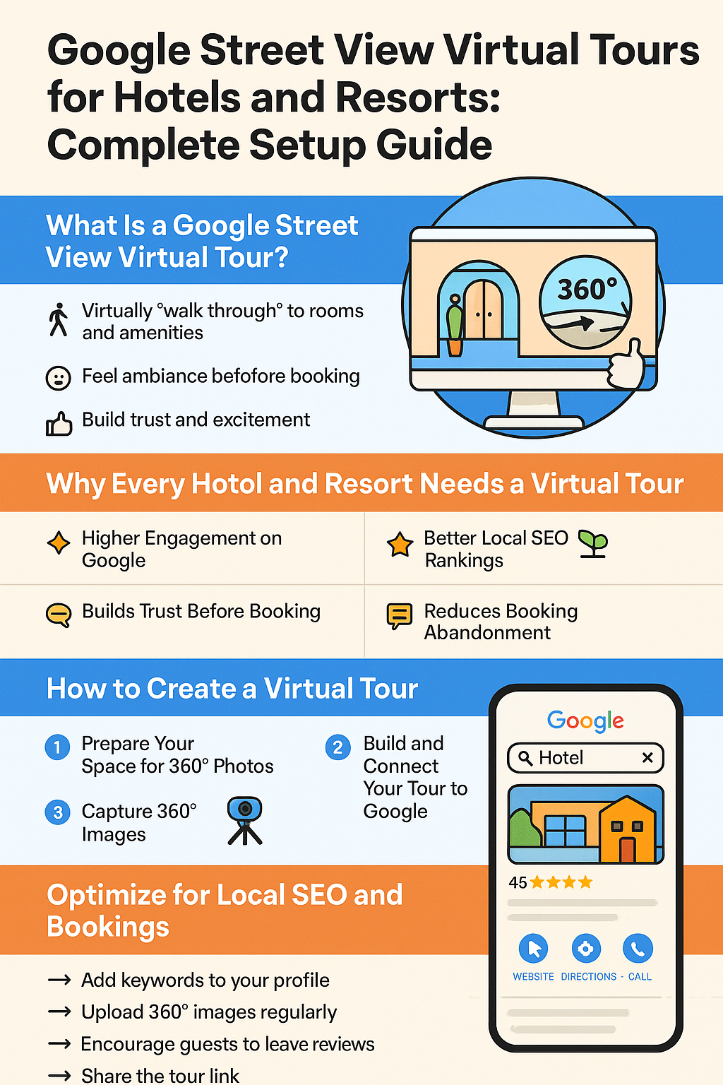Hotels and resorts thrive on experience. By adding a Google Street View Virtual Tour, you give guests that experience — before they ever step foot on your property.