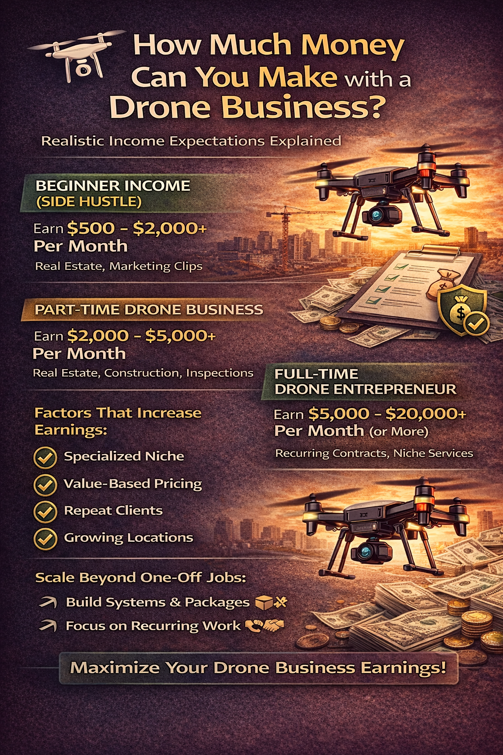 👉 A profitable drone business can generate anything from side income to full-time revenue—depending on how you structure it.
