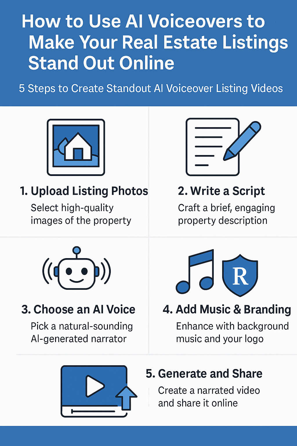 Buyers respond emotionally to tone and storytelling — something text or photos alone can’t deliver. Here’s why AI voiceovers make your listings shine: