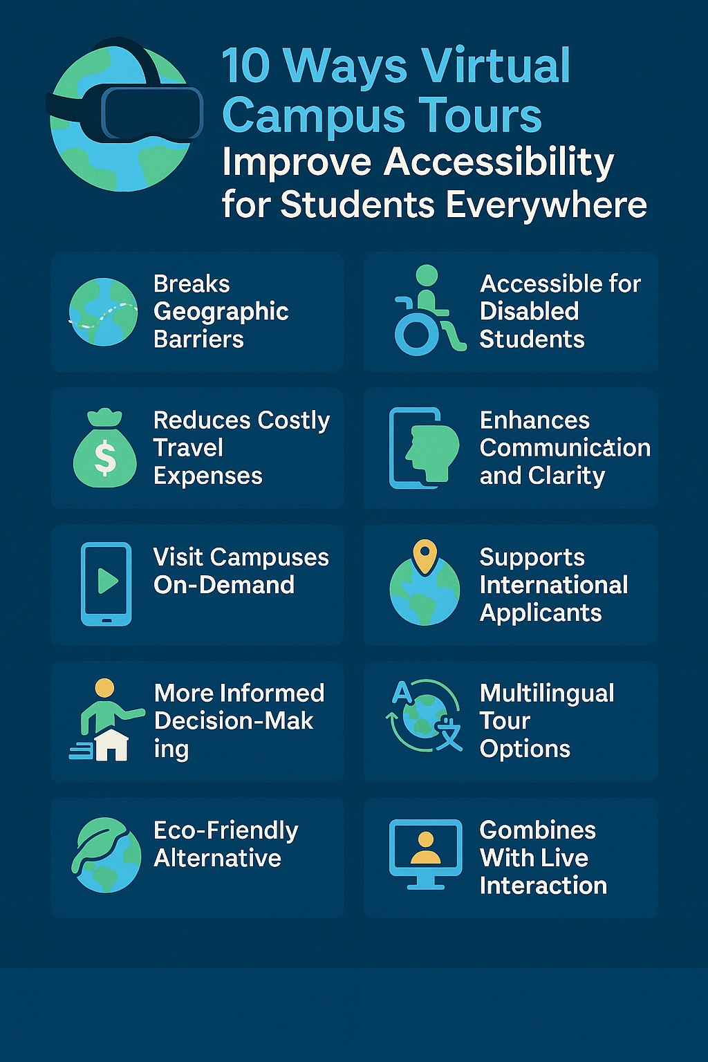 When integrated with accessibility features, virtual tours become an inclusive tool for students of all abilities — ensuring that everyone can experience what a campus truly offers.