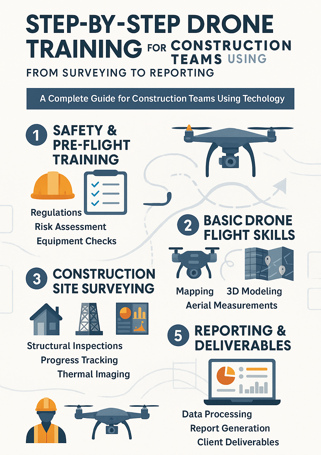 A strong drone training program is structured, practical, and designed to build competency in real-world construction environments. Below is a complete breakdown of what step-by-step training should include.